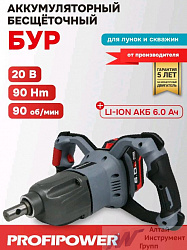 Бур аккумуляторный бесщеточный PROFIPOWER AM-20B (20В, 90Нм, Li-ion-1шт, 6.0Ач, З/У, в коробке)