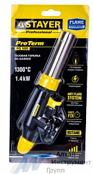 Горелка газовая STAYER ProTerm PG 500, 1300°C, увеличенный выход пламени, с пьезоподжигом на баллон с цанговым соединением, Professional (55580)