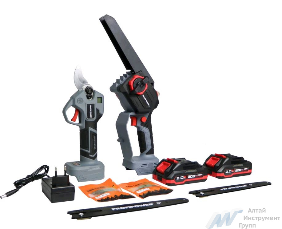 Набор инструментов Profipower ProfiSet-2G20 секатор E0099, пила цепная E0216 20v 2*2,0ач, коробка