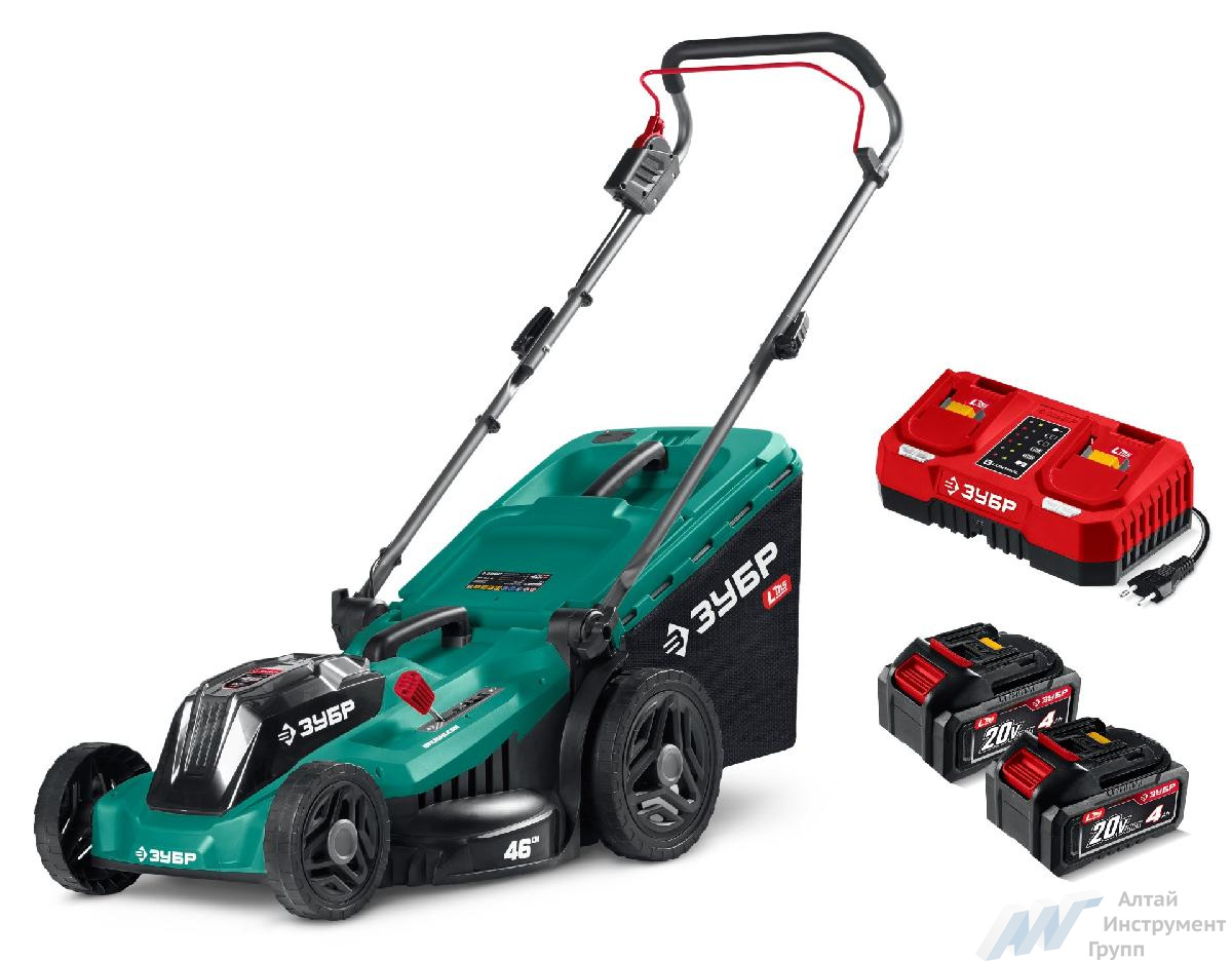 Газонокосилка аккумуляторная ЗУБР ГКЛ-4046-42, 40В бесщеточная, 2х20В АКБ (4Ач), 460 мм