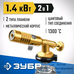 Горелка газовая ЗУБР ГРМ-200, 1300°C, цельнометаллическая, 2 в 1, на баллон с цанговым соединением, Профессионал (55556)